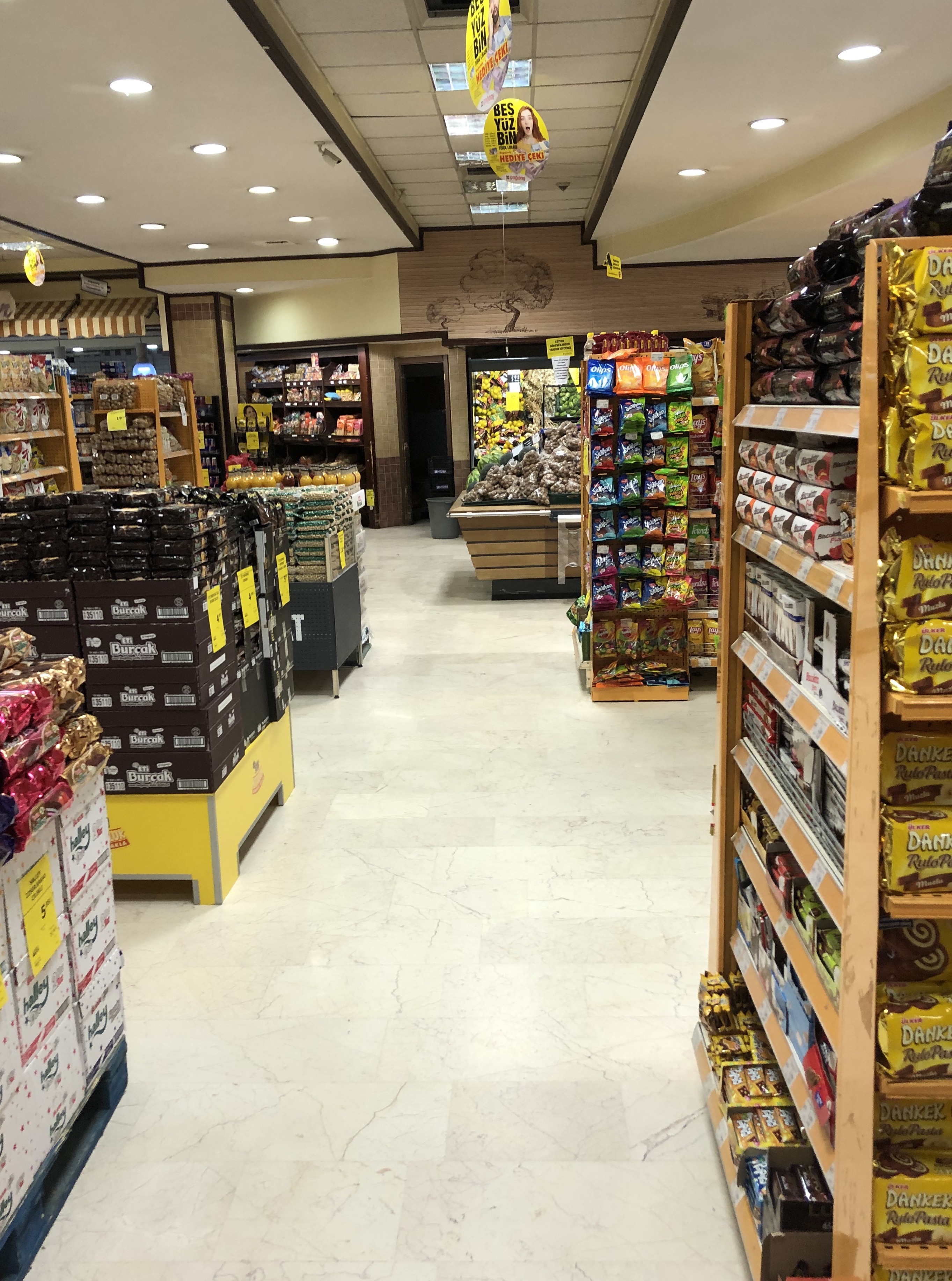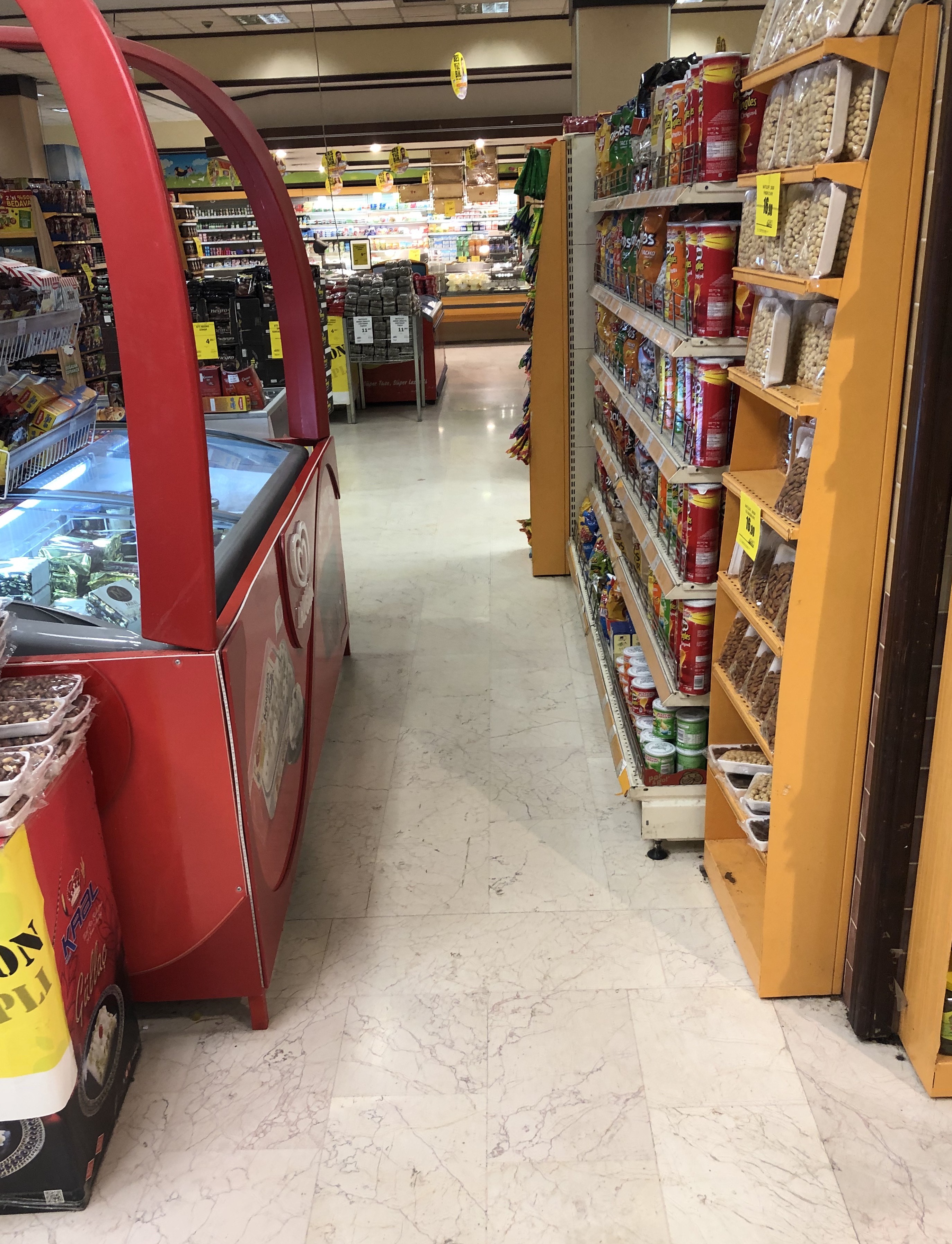 Raflar arası yeterince geniş, fakat bazı rafların arasında ürün yerleştirilmek üzere sepetler eklenmiş. Bu tür sepetler tekerlekli sandalye kullanıcılarına engel teşkil edebilir.